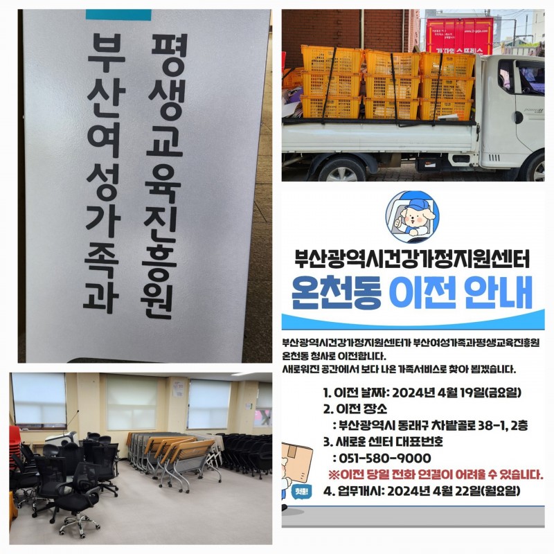 부산광역시 건강가정지원센터 이전 페이지 정보 작성자 가자익스프레스 작성일24-04-24 15:40 조회3,587회 댓글0건 이전글 다음글 목록 본문 건강가정지원센터가 온천동으로 이전하였습니다 댓글목록 등록된 댓글이 없습니다. 이전글 다음글 목록